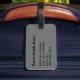 Gepäckanhänger mit Namen und Adresse auf einem massiv grauen (grauen) Hintergrund. Personalisieren Sie Ihre Namen- und Adressinformationen mithilfe der einfachen Vorlagen. Schriftart, Schriftart und Schriftart sind individuell einstellbar.
