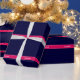 Solid Navy Blue, Raspberry Ribbon Name Monogram Geschenkpapier