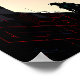 Eine melancholische Szene einer einsamen Figur, die auf einem Hügel stehend ist und auf einem kolossalen, krummen Mond aufblickt.