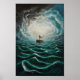 Solitärboot in turbulenter Meereslandschaft Poster