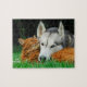 Somalische Katze und sibirischer Schlittenhund huggle zusammen, sie Liebe, eine nahe Freundschaft. Ein Tier-Foto genommen von Katho Menden. Dieses Haustier-Foto-Puzzlespielspiel ist eine Geschenkidee für Katzen- und Hundeliebhaber. http://www.zazzle.com/kathom_photo