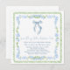 Chic and whimsical square bridal shower invitation with a vintage grandmillenial-inspired design featuring watercolor illustrations of a green scalloped and delicate blue floral frame and a blue coquette bow, "something blue before I do" showcased in a blue calligraphy script, and the name of the bride and shower details in classic serif typography.