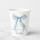 Elegante Papierschaalen für Ihre Brautparty mit einem Wasserfarbenmotiv eines fantastischen blauen Bandes, "something blue before I do" in einer schicken Kalligrafieschrift und dem Namen der Braut und dem Datum der Party in klassischer Serif-Typografie.