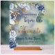 Welcome your guests in elegant style with this Something Blue Before I Do floral acrylic sign. Featuring romantic watercolor blue and blush florals with soft greenery accents, this modern design sets a chic and timeless tone for your bridal shower or pre-wedding celebration. Printed on high-quality acrylic for a sleek, polished finish, it’s perfect for displaying at the entrance, gift table, or dessert station. A beautiful keepsake that adds a touch of sophistication to your “something blue” bridal theme.