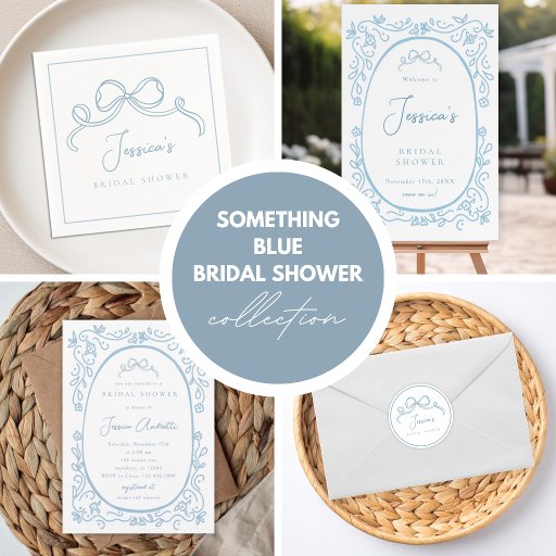Celebrate the bride-to-be with these elegant Something Blue bridal shower napkins featuring a soft dusty blue palette, delicate bow accents, and classic toile-inspired detailing. Perfect for a refined and romantic bridal shower theme, these disposable napkins add a coordinated and polished touch to your celebration. Ideal for dessert tables, cocktail hour, or guest place settings, they blend timeless charm with modern wedding elegance.