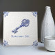 Celebrate timeless tradition with this “Something Old” ceramic tile featuring an ornate antique skeleton key illustrated in classic Delft blue. The artwork combines a detailed pen-ink sketch look with soft cobalt shading, framed by traditional Dutch corner scrollwork on an aged crackle-glaze background for an authentic vintage pottery vibe. A meaningful bridal shower or wedding keepsake, this tile makes a charming accent for a cottage kitchen backsplash, bathroom shelf display, entryway vignette, or gallery wall arrangement.