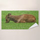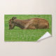 Une photo d'un veau d'Elk fatigué posé dans une parcelle d'herbe mélangée avec des trèfles blancs. Copyright ©2019 Kimberly J Tilley.