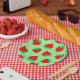 Pappteller, der Sommererdbeerentwurf kennzeichnet.