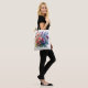 Schöne botanische Totentasche mit Blumenmuster mit einer schönen Auswahl an Blume. Diese Tasche hat rosa, lila und blaue Blumen, die in einem hübschen Bouquet eingerichtet sind.