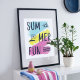 Feiern Sie den sorgenfreien Geist des Sommers mit diesem dynamischen grafischen Poster "Summer Fun". Mit leuchtenden Farben und spielerischen Designelementen ist dieses Kunstwerk der perfekte Weg, um sonnige Ausblicke und Wärme in jeden Raum zu bringen. Ideal, um Ihrer Zuhause oder Ihrem Büro eine saisonale Touch hinzuzufügen.