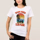 Das Material ist eigentlich gute Qualität, der Stoff ist nur etwas verzogen so dass der Drück leicht schief aussieht. Der Druck ist gute Qualität, habe das T-Shirt schon einige male gewaschen.