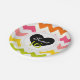 Hübscher bunter PapierTeller, für ihren Bonbon 16 Geburtstags-Party. Hübsches orange, rosa, gelbes Grün- und weißesZickzack Muster, mit einem schwarzen Herzen.
