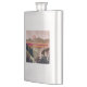Eine abstrakte Landschaft mit einzigartigen Farben und Texturen, die eine Naturlandschaft mit aufsteigender Sonne und zwei Gänsen in Orange-, Beige-, Braun- und Rosatönen zeigt.