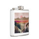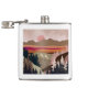 Eine abstrakte Landschaft mit einzigartigen Farben und Texturen, die eine Naturlandschaft mit aufsteigender Sonne und zwei Gänsen in Orange-, Beige-, Braun- und Rosatönen zeigt.