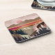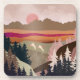 Eine abstrakte Landschaft mit einzigartigen Farben und Texturen, die eine Naturlandschaft mit aufsteigender Sonne und zwei Gänsen in Orange-, Beige-, Braun- und Rosatönen zeigt.