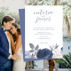 Summer Wedding Bright Blue Floral Einladung entworfen mit Aquarellfarben Blume in den Farbtönen Blau und Weich Grau, auf einem weißen Hintergrund. Der erste Text enthält: The Bride and Groom's Names Wedding Date, Time, Location, Address, and Empfang Note. Das Gegenteil ist ein passender sommerblauer Hintergrund mit der Bride und Groom's First Names in weißem Text. Fügen Sie einfach Ihren Text in unsere einfache, schrittweise Vorlage ein, und ersetzen Sie das Beispiel. Schauen Sie sich unbedingt die gesamte Summer Wedding Bright Blue Floral Stationery Collection an, um passende Karten und Accessoires zu erhalten. Diese Karte ist sowohl in Print als auch im Download erhältlich.