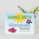 Dieses Party lädt die GRILLEN im Hinterhof zu einem strahlend farbigen Design ein, das mit einer Sonnenstraße, Flip Flops, Sonnenbrille und Wassermelone aufwartet. Mit dem anpassbaren Text können Sie Ihre Party-Daten hinzufügen.