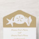 Mit dieser einmaligen Einladung und RSVP-Karte können Sie Ihre Veranstaltung mit Touch Sommerspass bereichern. Im Inneren befinden sich die weißen Silhouetten eines Seesterns, Sand-Dollar-Muschel und eine Muschel auf einem sandfarbenen Hintergrund über einem Bereich mit einem Muster-Text, der für Ihren besonderen Tag angepasst werden kann. Im unteren Teil des Einladens befindet sich ein herausnehmbares, postkartengroßes Stück, das einen Beispieltext über einem Sandstreifen mit Muscheln, Seestern und Sandgeld hat, der sich über den Boden verstreut befindet. Draußen befindet sich ein ähnlicher Rand von Muscheln auf Bräunung unter den Bereichen, wo man Briefmarke, Standard und Rücksendeadressen für die Einladung als Ganzes und für den UAWG, der zurück zu geben. Die Lasche, die verwendet wurde, um zu falten und Siegel der Karte hat die Seesterne, Sand Dollar, und conch Muschel auf einem Sand Hintergrund mit einem Beispiel Set von Initialen, die Sie anpassen können für eine endgültige persönliche Touch und um den Sommer Strand Gefühl. Vergewissern Sie sich, dass Sie die Erholung der Summer Seashells in Sand Set für andere koordinierende Produkte, einschließlich Rücksendeadressen-Aufkleber, ausnutzen können.