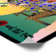 Dieses lebendige japanische Holzschnitt-Kunstwerk präsentiert eine atemberaubende Verschmelzung traditioneller ukiyo-e Kunst mit zeitgenössischer Laune. Eine siamesische Katze trägt einen verzierten Kimono in römischem Königsblau und Rot mit faszinierenden Goldmustern. Die Szene fängt einen Sonnenaufgang oder Sonnenuntergang im Sommer ein, mit dem Monte Fuji silhouetted gegen einen dramatischen Himmel, der in warmen Rosa, Orangen und Gelb gemalt wurde. Die Katze wird in einem Augenblick der Betrachtung auf einer hölzernen Veranda (engawa) dargestellt, gekleidet in einem aufwändigen Kimono, dekoriert mit wolkenähnlichen Mustern und geometrischen Designs. Im Hintergrund dehnt ein traditioneller Kiefernbaum seine smaragdgrünen Nadeln über die Szene aus, während ein dekorativer Bildschirm oder eine Trennwand mit fett geometrischen Mustern und einer hängenden Laterne der Komposition Tiefe verleiht. Das Kunstwerk umfasst klassische ukiyo-e-Elemente wie den gelben fächerförmigen Cartouche im oberen links, der japanische Schriftzeichen enthält, und ein rotes kreisförmiges Siegel mit Kanji im unteren links. Besonders auffallend ist die Farbpalette, die lebendige Blues und Rottöne des Kimono mit den warmen Sonnenuntergangsfarben und dem coolen grünen Vordergrund verbindet und so eine dynamische und dennoch harmonische Komposition schafft. Dieses Stück verbindet auf meisterliche Weise traditionelle japanische künstlerische Elemente mit spielerischer moderner Interpretation. Die detaillierten Muster, die sorgfältige Komposition und die reichen Farbverläufe zeigen, wie gut die Kunstfertigkeit ist, während die skurrile Attraktivität des Felinenkreises erhalten bleibt. Der Gesamteindruck schafft ein anspruchsvolles Stück, das eine bemerkenswerte Ergänzung zu zeitgenössischen und traditionell gestalteten Räumen wäre. Die Szene erfasst die Gelassenheit eines japanischen Sommers Abend und fügt eine fantasievolle Drehung hinzu, die es für das moderne Publikum einzigartig anziehend macht.