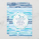 Ein wunderschönes horizontales Muster der Blues mit Weiß und einem abgerundeten Mittelgang, der die Details Ihres Party enthält. Ideal für Sommerfeste. <a href="http://www.freepik.com/free-vector/watercolor-abstract-summer-pattern-background_1196817.htm">Designed by Freepik</a>). <br/>()<br/>Die Karte ist einfach zu anpassen mit Ihrem Wortlaut, Schriftart, Schriftart Farbe, Papierform Optionen und Auswahl von sechs Papiertypen.<br/>() Nicht genau, was Sie suchen? Alle unsere Produkte können auf Ihre Bedürfnisse zugeschnitten werden, ohne Aufpreis.<br/>() Kontaktieren Sie uns einfach unter askcottonlamb@gmail.com.<br/>() ) Koordinierung der verfügbaren Produkte: frag uns einfach!