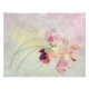 Weich gefärbter Druck von schönen Orchideen mit einem Grunge Hintergrund. Die Farben sind hellfarben, lavender und hellgelb.