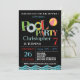 Printable Summer Pool Party Einladung für Jungen. Set auf einem Kalkbrett mit bunten Sommerbeckenelementen, blauen Wasserwellen und Beachball. Ideal für eine Geburtstagsfeier im Freien mit nahen Freunden.