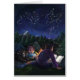Die Starry Night Art von Traci Van Wagoner druckt, Plakate, Accessoires und Geschenke zeigt unser originelles Gemälde von zwei Kindern und ihrem großen, schwarzen Camping unter den Sternen, das ein fantastisches Buch rund um ein Lagerfeuer über Ritter und Drachen liest. Der Zauber der Geschichte wirbelt in den Sternenhimmel, um einen Ritter und einen Drachen in einem ewigen Nachts-Tanz von Sternen zu zeigen. Genießen Sie ein Nachtlager in den Bergen.