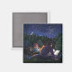 Die Starry Night Art von Traci Van Wagoner druckt, Plakate, Accessoires und Geschenke zeigt unser originelles Gemälde von zwei Kindern und ihrem großen, schwarzen Camping unter den Sternen, das ein fantastisches Buch rund um ein Lagerfeuer über Ritter und Drachen liest. Der Zauber der Geschichte wirbelt in den Sternenhimmel, um einen Ritter und einen Drachen in einem ewigen Nachts-Tanz von Sternen zu zeigen. Genießen Sie ein Nachtlager in den Bergen.