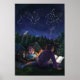 Die Starry Night Art von Traci Van Wagoner druckt, Plakate, Accessoires und Geschenke zeigt unser originelles Gemälde von zwei Kindern und ihrem großen, schwarzen Camping unter den Sternen, das ein fantastisches Buch rund um ein Lagerfeuer über Ritter und Drachen liest. Der Zauber der Geschichte wirbelt in den Sternenhimmel, um einen Ritter und einen Drachen in einem ewigen Nachts-Tanz von Sternen zu zeigen. Genießen Sie ein Nachtlager in den Bergen.