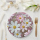 Feine, rosa und weiße Blume mit gelben Mittelpunkten sind Set vor einem weichen, verschwommenen rosa Hintergrund