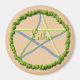 Ein sonnengelbes und himmelblaues Pentakel ist von einer Reihe von Sommerbäumen umgeben in diesem einfachen Litha-Design, das einer meiner Versuche ist, Pentakel zu schaffen, die jeden der 8 wiccanischen Feiertage (Sabbatten) darstellen