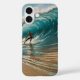 Surfer mit türkisfarbenen Wellen unter einem strahlenden Sommerhimmel. Ein lebendiges und unterhaltsames Design für Sommertelefone.