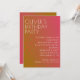 Diese Geburtstagsfeier lädt mit einem lebendigen, hitzewellen-inspiriert Hintergrund ein. Die warmen Farbtöne, die von goldfarbener Orange bis feuerrot reichen, prägen das Wesentliche eines heißen Sommertages. Der kühne, moderne Schriftart zeichnet sich durch große Buchstaben aus und sorgt für den Pop der Veranstaltung gegen den schimmernden, wellenartigen Verlauf. Minimalistische Akzente wie ein Martini-Glas oder Zitrusscheiben sorgen für eine lustige Touch, ohne das Design zu übertreiben, und geben ihm ein lebendiges, sommerliches Ambiente, das perfekt für einen festlichen Abend ist.