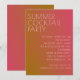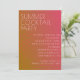 Diese Cocktail-Party Einladung besticht durch einen lebendigen, hitzewellen-inspiriert Hintergrund. Die warmen Farbtöne, die von goldfarbener Orange bis feuerrot reichen, machen den heißen Sommertag zu einem unvergesslichen Erlebnis. Der kühne, moderne Schriftart zeichnet sich durch große Buchstaben aus und sorgt für den Pop der Veranstaltung gegen den schimmernden, wellenartigen Verlauf. Minimalistische Akzente wie ein Martini-Glas oder Zitrusscheiben sorgen für eine lustige Touch, ohne das Design zu übertreiben, und geben ihm ein lebendiges, sommerliches Ambiente, das perfekt für einen festlichen Abend ist.