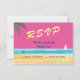 Dieser farbenfrohe RSVP ist mit einer hellen Sonne, Möwen, blauem Wasser und einigen tropischen Getränken ausgestattet. Der Typ verleiht diesem UAWG ein Retro-Gefühl und behalte es lustig und spielerisch, sodass es sich perfekt für die Hochzeit am Strand, in der Karibik, am Hawaiianischen Meer, in den Tropen oder im Sommer eignet.