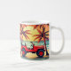 Ein Bild einer Strandlandschaft mit einem roten Jeep, geparkt in der Mitte von zwei Palmen, die die Wärme und die Brise der Sommerzeit am Strand erinnert. Dieses Design lädt uns ein, auf einen großartigen Urlaub vorbereitet zu sein.