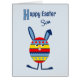 Ein niedlicher Osterhase für Ihren Sohn in Form eines Ostereis. Das Ei ist mit Streifen, Zickzacken und Flecken in Gelb, Rot und Blau dekoriert, der Hintergrund ist hellblau. Im Inneren lautet der Gruß: "Ein glücklicher Osterhasen ist hier, um einem ganz besonderen Sohn ein sehr glückliches Ostern zu wünschen!" oder das kann auf Ihre Bedürfnisse zugeschnitten werden.