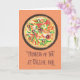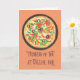 Lass deinem Sohn, dass du mit dieser lustigen Pizzakarte an ihn denkst. Ein Spiel auf dem Wort Pizza, wird ein Schluckle bringen. Eine Pizza auf einem Holzstück mit orangefarbenem Hintergrund und einem Muster an Flecken.