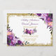 Aquarellfarben Lila Ultra-Violet Floral Gold Glitzer Hochzeitskarte - Lila Script - Lila Back