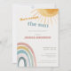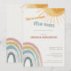 Eine warme und fröhliche „Here Comes the Sun“ Einladung zur Babyparty mit einem weichen Regenbogen- und Sonnenscheindesign, perfekt, um einen kleinen Sonnenschein zu feiern.