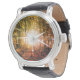 Uhr, Vintage Männeruhr mit schwarzem Lederarmband