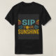 Das Design des T - Shirt zeichnet sich durch den Begriff "Sip Your Sunshine" aus, der in lebhaften, kontrastfarbenen Farbtönen und Set vor einem sonneninspirierten Hintergrund gehalten ist. Die wirbelnden Strahlen und warmen Farbtöne rufen ein Gefühl von Glück und Optimismus hervor, das die Essenz eines sonnigen Tages einfängt. Die spielerische Farbpalette verleiht Energie und Dynamik und macht das Design sowohl auffällig als auch aufregend.
