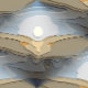 Ein abstraktes Kunstdesign der Sonne über den Hügeln von Wales.