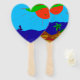 Sich an heissen Sommertagen kühle Luft zu fächeln, mit einem Fächer, auf dem ein Sommertag am Meer zu sehen ist.