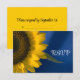 Passen Sie die fröhliche Sonnenblume auf Blue Wedding RSVP Response Card mit Ihrem spezifischen Antwortdatum an und verbinden Sie mit den entsprechenden Eheeinladungen, um ein koordiniertes Hochzeitsbriefing-Set zu erstellen. Diese nahe, blumengeschmückte Hochzeitskarte zeigt eine gelbe Sonnenblumenblüte auf blauem Hintergrund.