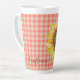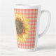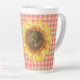 Die bezaubernde Kaffee-Tasse im Landhausstil mit Gingham Karo-Hintergrund und großer Sonnenblumenblüte im Wasser