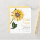 Stilvolles Brautparty-Papier-Einladung-Design mit einer großen hellen Sonnenblume auf einem sauberen, weißen Hintergrund. Dieses Design ist perfekt für Sommer / Herbst Brautparty, Brunches, Party. Bereit für einfache Personalisierung.