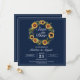 Elegante Hochzeit Save the Date mit einem wunderschönen Sonnenblumenkranz und marineblau. Personalisieren Sie es mit einem QR-Code auf der Rückseite, dass Ihre Gäste scannen können, um einfach Ihre Hochzeitswebsite zu öffnen.