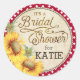 Sonnenblume Gingham Karo Rustikales Brautparty Lab Runder Aufkleber
