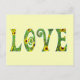 Das Wort Liebe besteht aus einem Foto von Sonnenblumen.